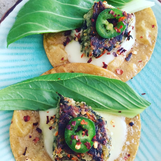 When all you have is 10 minutes to throw something together and you’re starving, these are perfect and perfectly satisfying. I garnish them with a sprig of Bok Choy or ‘super greens’ which provides more nutrients than regular lettuce. Everything. Is organic of course. And yes, that’s a slice of jalapeño and red pepper for some zing! Enjoy.