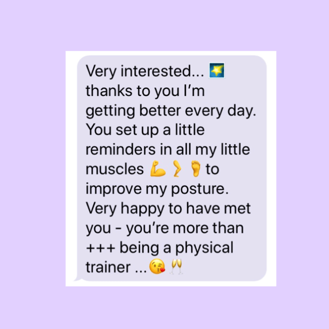 My new client came to me a month and a half ago post- neck surgery. She’s 76, no weight issues but was very dissatisfied with physical therapy I’m sad to say. She wanted individualized attention and rightly so. The good thing is that she had then been cleared by her doctor to train with me once he knew our program of exercises and goals. She’s coming along great and I watch her movements closely. Actually, that’s just what I do with all of my clients.. pay close attention. The bonus? We also have a blast together. She’s a crack up! Onward and upward!